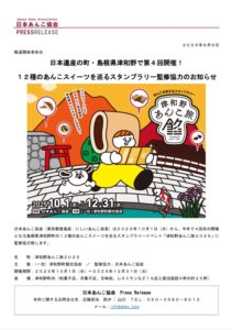 この度、第4回目の開催となりました、島根県津和野町にて12種のあんこスイーツを巡るスタンプラリーイベント「津和野あんこ旅2025」に監修協力致します。開催期間は2025年10月1日(水)~2025年12月31日(水)となっております。